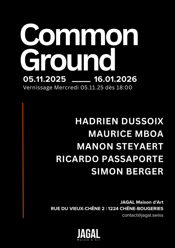 Common Ground évoque un espace partagé — un terrain commun où se rencontrent des sensibilités distinctes. Cinq artistes, cinq regards, cinq univers singuliers, unis par le désir d’explorer la matière, la forme et la lumière : Maurice Mboa, Ricardo Passaporte, Simon Berger, Hadrien Dussoix et Manon Steyaert